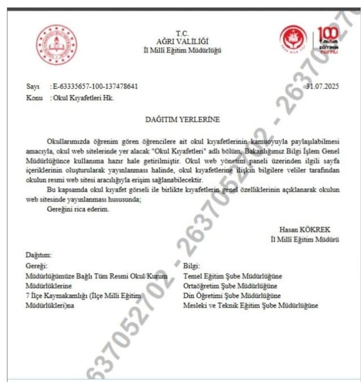 OKUL ÜNİFORMASI HAKKINDA DUYURU